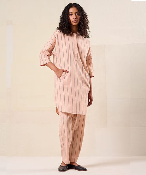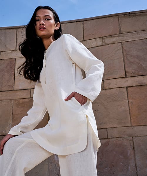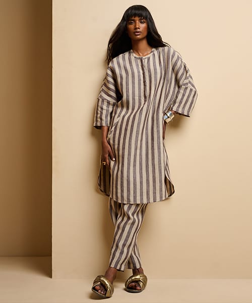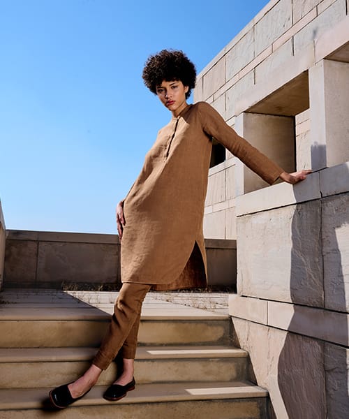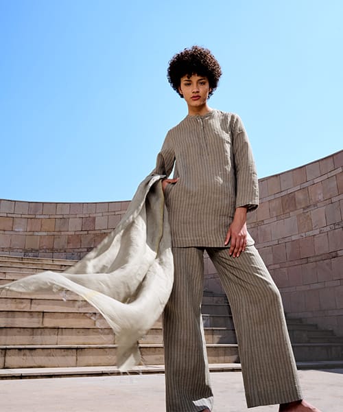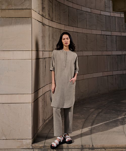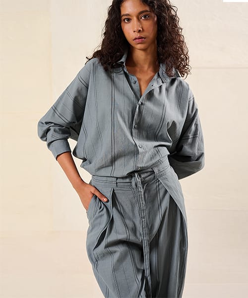Contemporary classics for women, effortless styles in linen, cotton and Kala cotton, fabrics that breathe with the season. Each textile is designed from the ground up and developed in collaboration with artisans mainly in West Bengal and Gujarat, India.